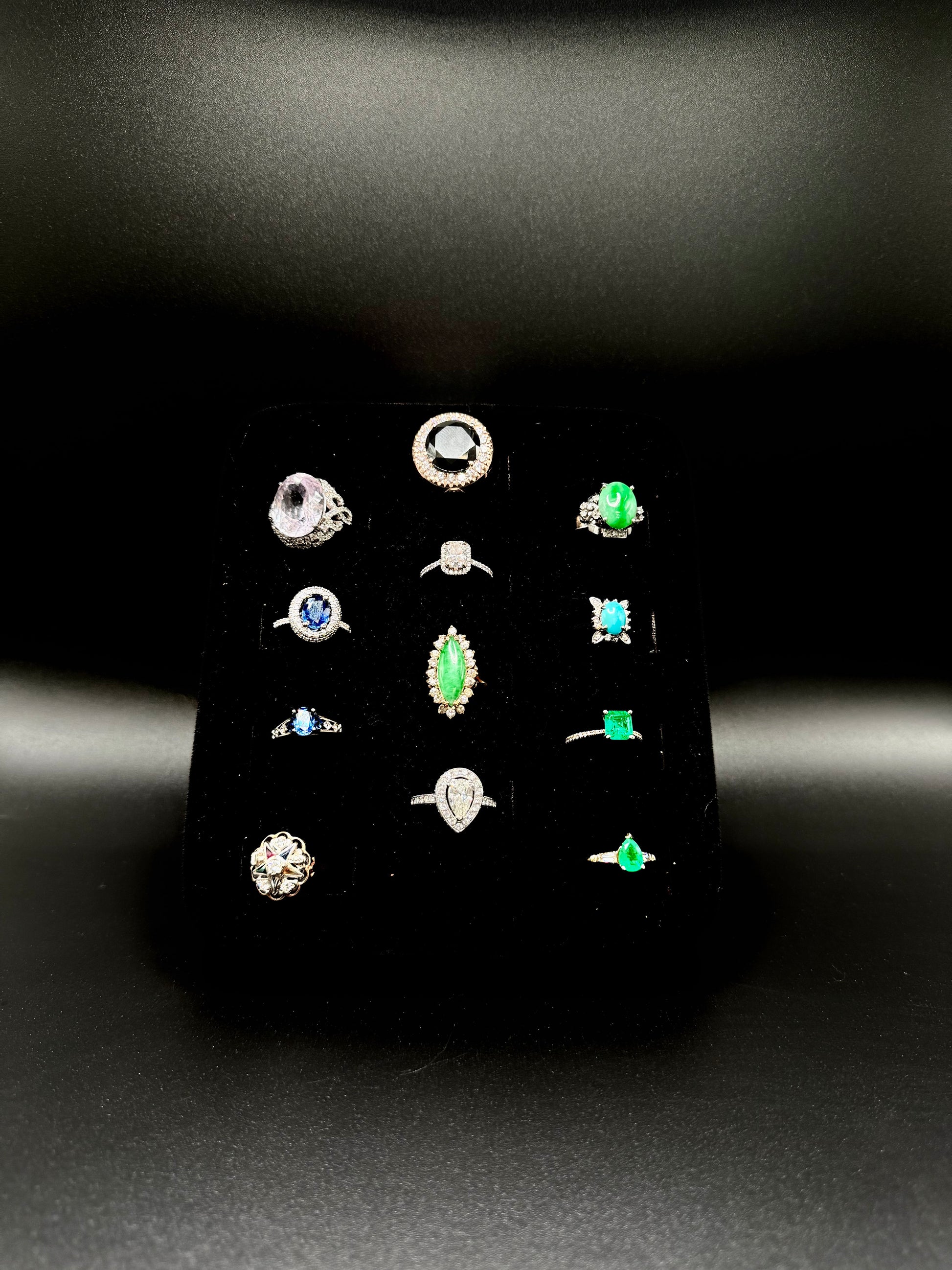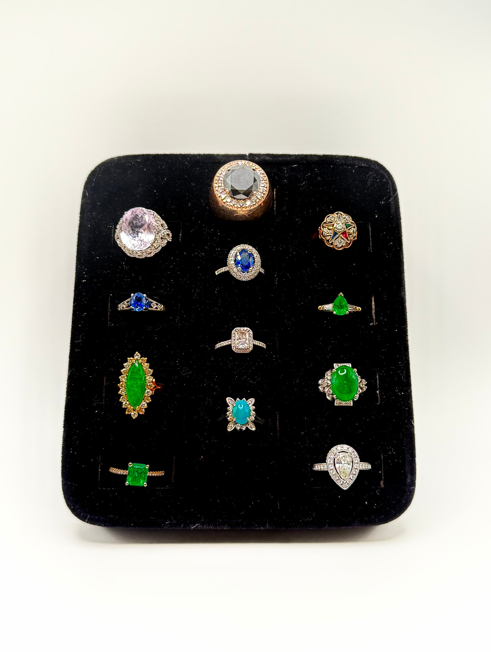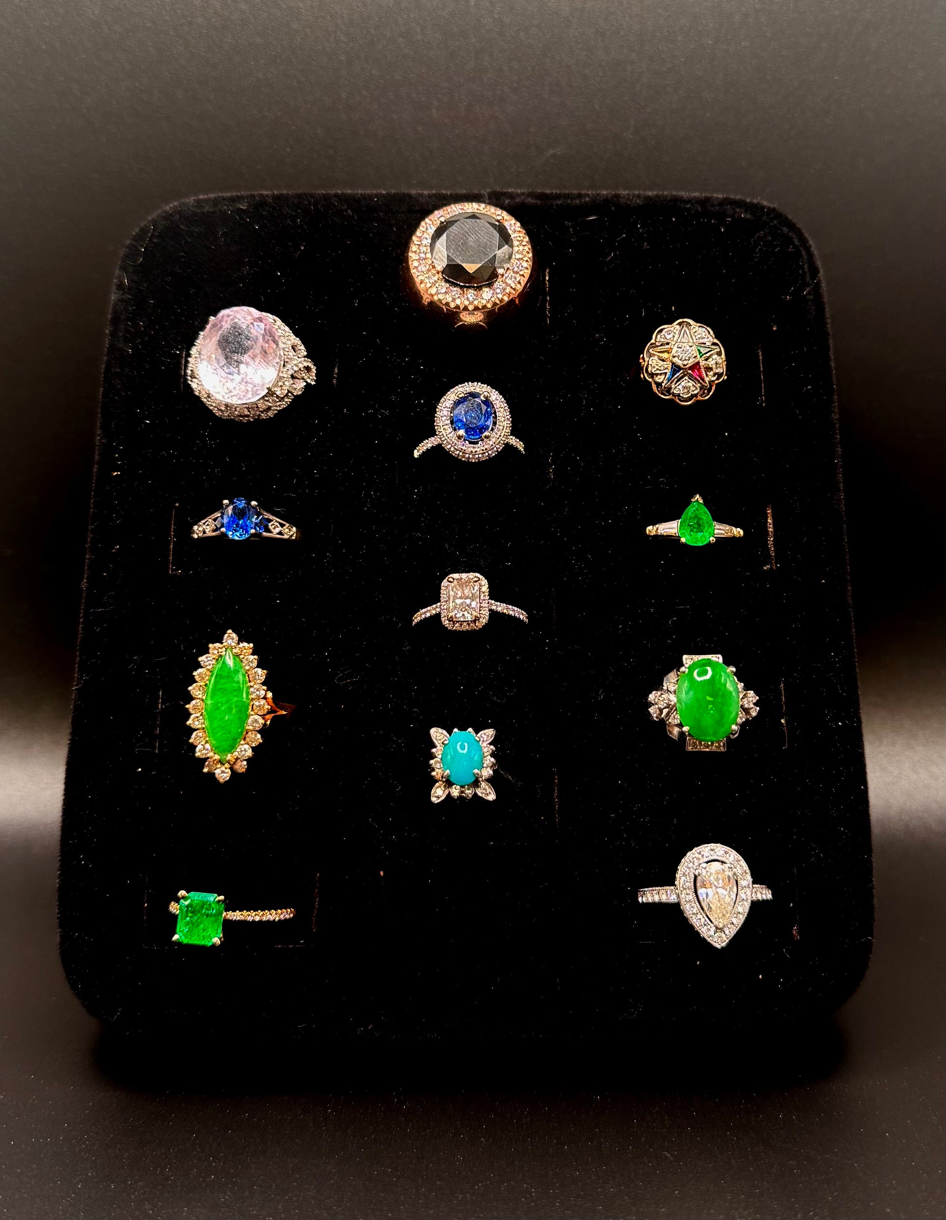 Luxury 12-Ring Collection – 5 Diamond Rings (8ct Total) in 14k Gold + Gemstones | Sapphire, Emerald Turquoise, & Jade