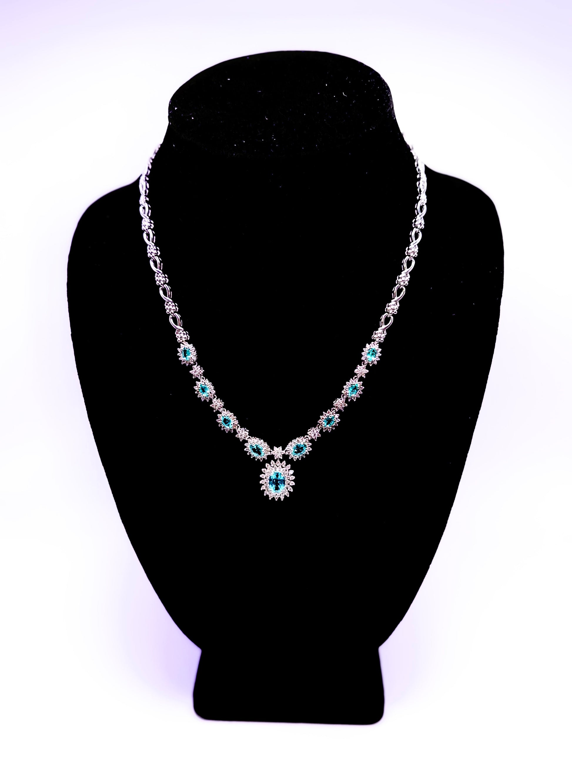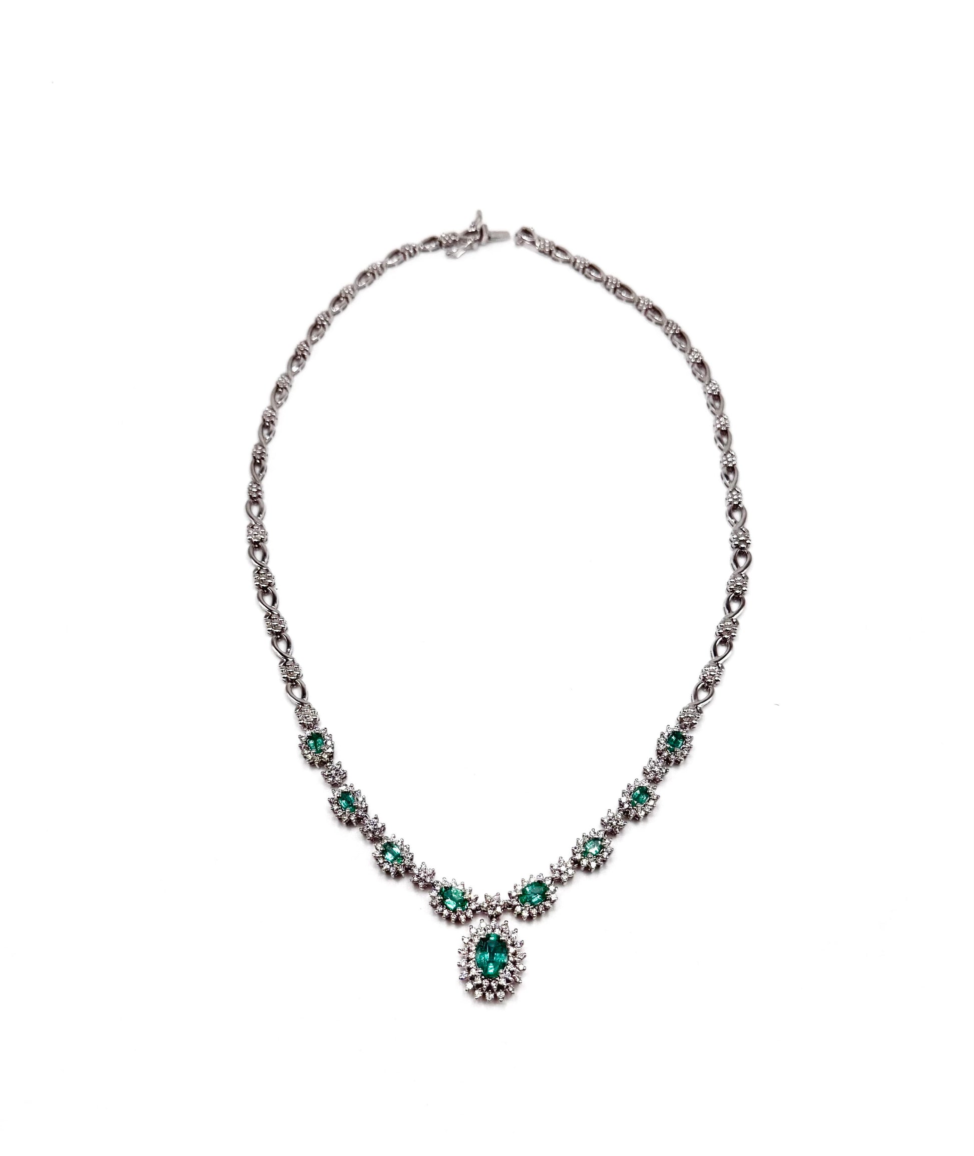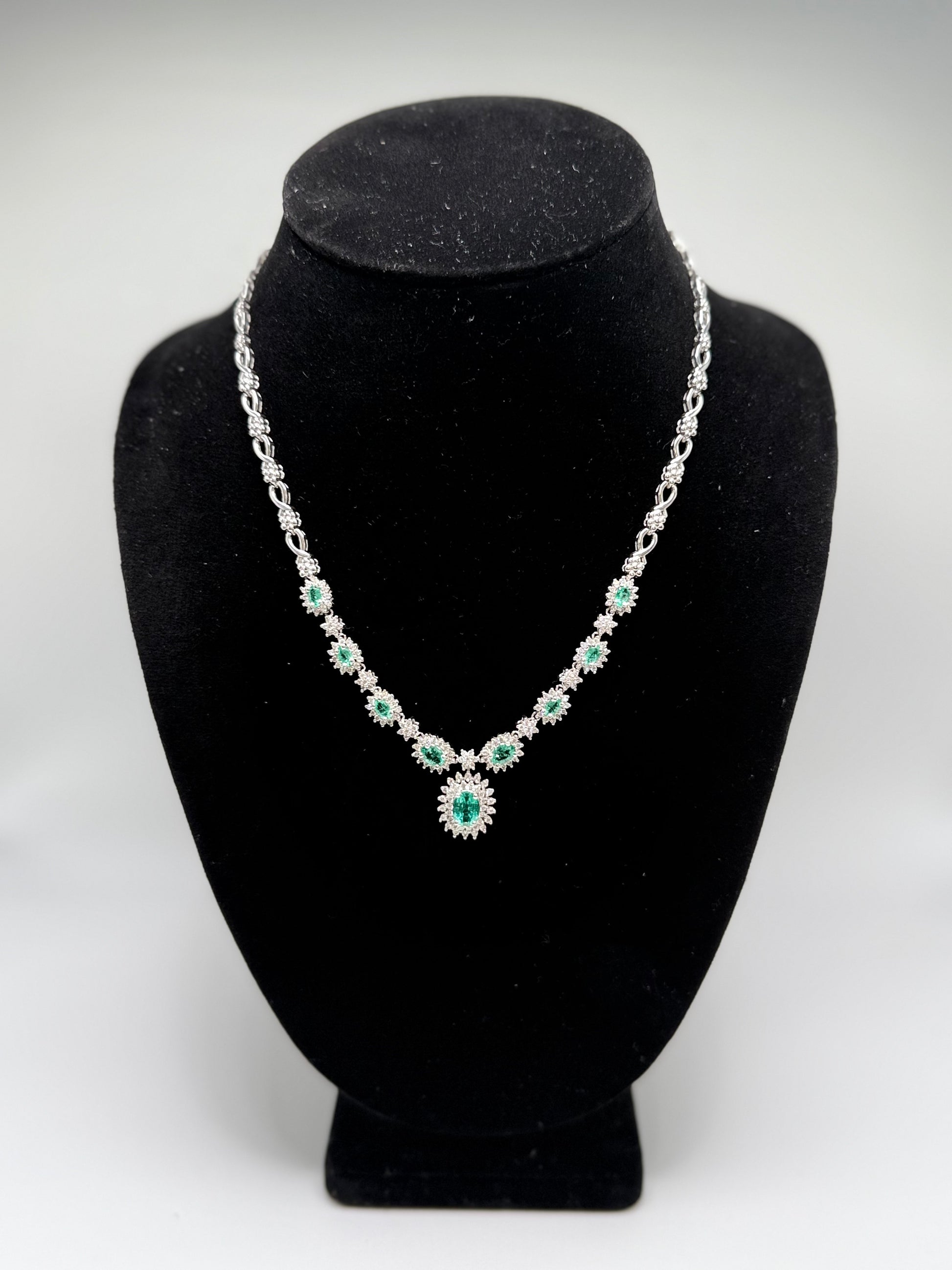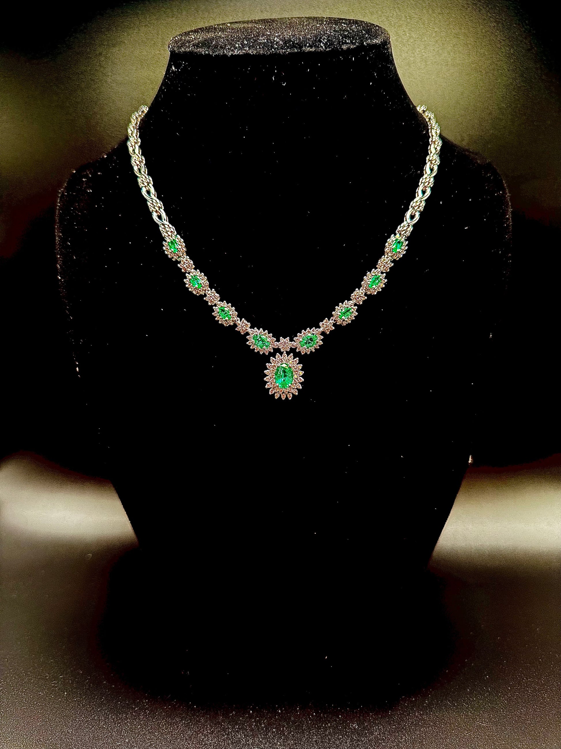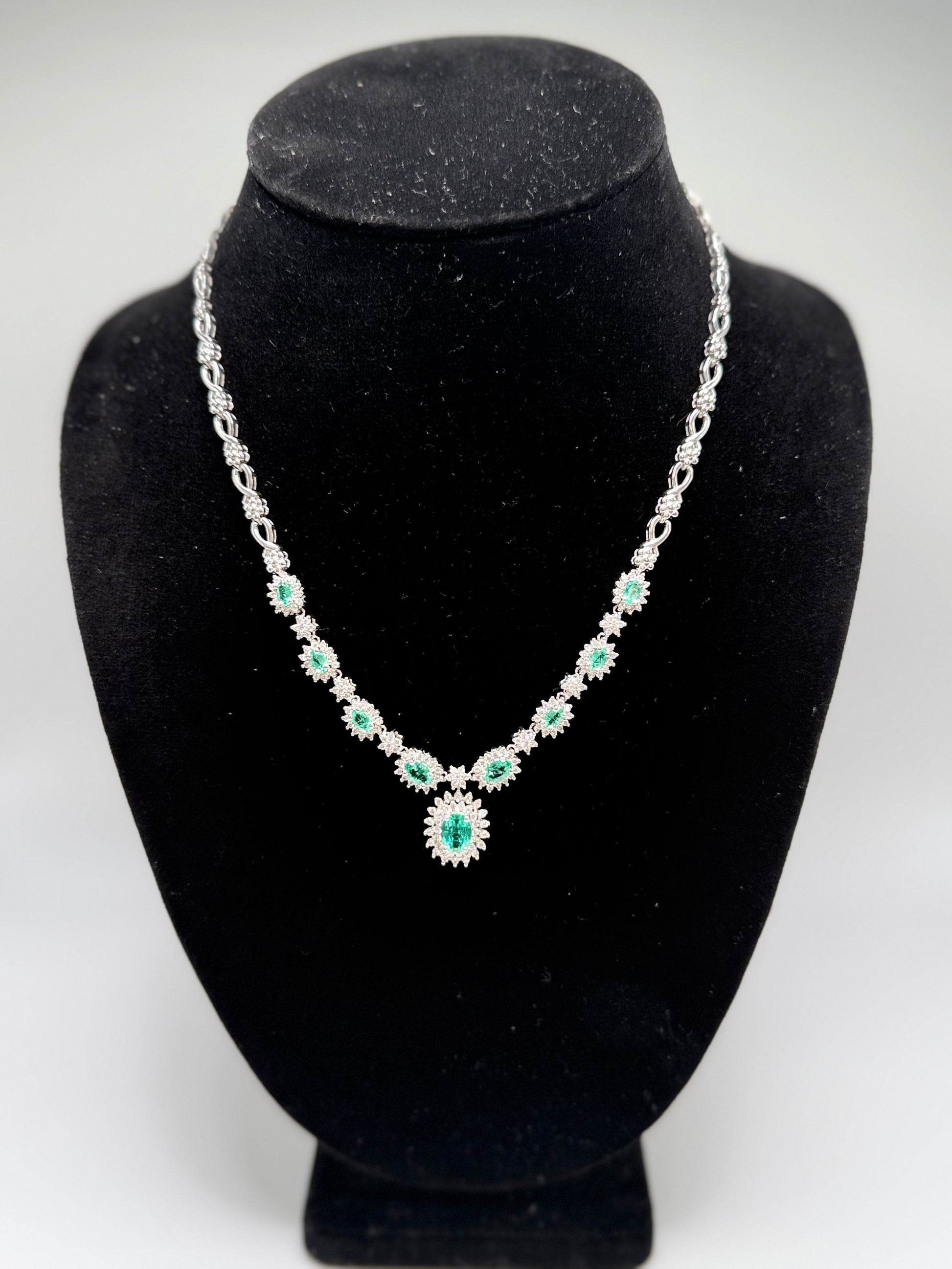 Turn heads with this timeless masterpiece. This high-end 14kt gold necklace features 4 carats of lush emeralds and 4 carats of natural diamonds, elegantly set in 30.3 grams of solid gold. Designed for those who appreciate the finer things in life, this 17-inch bracelet is the perfect blend of luxury and craftsmanship.