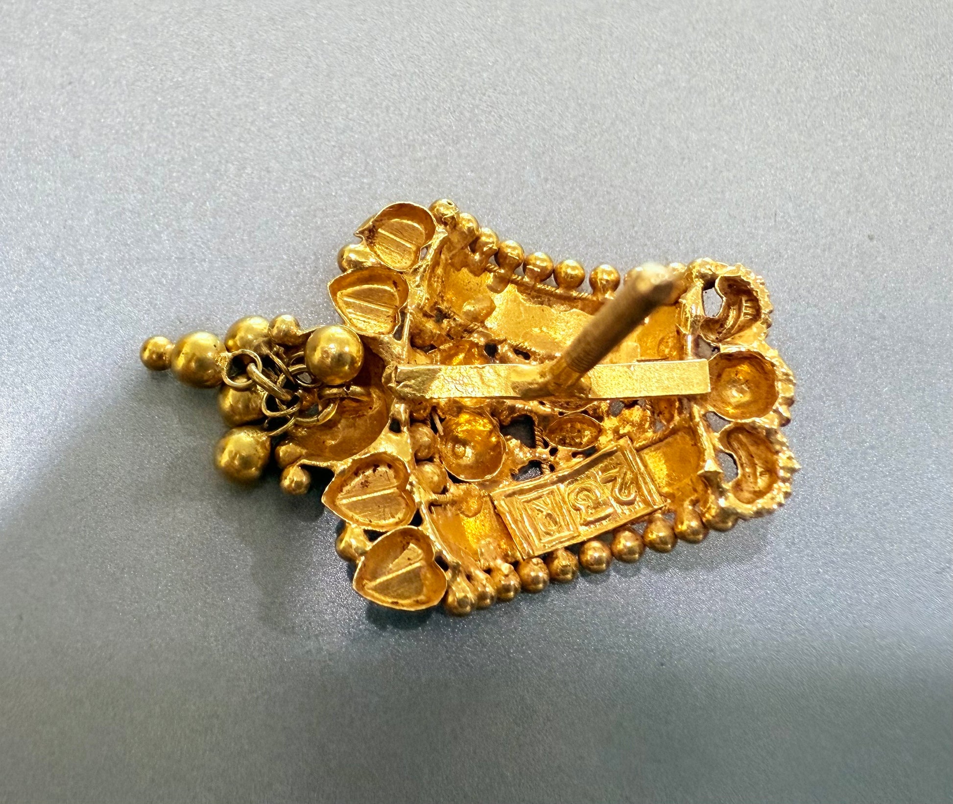 Add timeless elegance to your collection with these solid 23K gold earrings, crafted in a traditional style with intricate detailing and hand-finished gold bead accents. Lightweight, elegant, and rich in heritage.