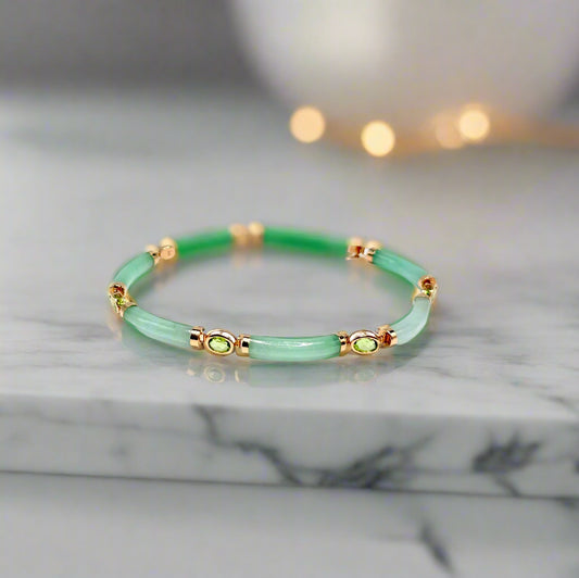 14k Gold Jade Stone Bracelet – Timeless Luxury, 11.8g